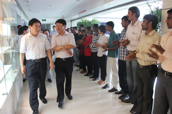 8月29日,市委常委、常務(wù)副市長左沛廷帶領(lǐng)全市重點項目建設(shè)推進(jìn)現(xiàn)場會與會人員來臨沂經(jīng)濟(jì)開發(fā)區(qū)參觀考察,并到臨沂市拓普網(wǎng)絡(luò)有限公司視察指導(dǎo)工作,臨沂經(jīng)濟(jì)開發(fā)區(qū)黨工委副書記、管委會副主任鄒際國陪同。 拓普網(wǎng)絡(luò)公司總經(jīng)理王嵐保向左沛廷市長一行詳細(xì)介紹了公司“中印軟件產(chǎn)業(yè)園”的籌備建設(shè)情況、以及引進(jìn)印度籍專家40余人的工作生活情況,并對公司的發(fā)展?fàn)顩r、研發(fā)項目和發(fā)展前景做了重點匯報。 左沛廷市長一行參觀了公司的榮譽墻,對拓普網(wǎng)絡(luò)公司在物聯(lián)網(wǎng)、智能化系統(tǒng)研發(fā)取得多項自主知識產(chǎn)權(quán)專利證及獲得中國國際博覽會金獎等研發(fā)成果給予了高度評價,對拓普網(wǎng)絡(luò)公司的發(fā)展?fàn)顩r給予了充分肯定,對于引進(jìn)40余名印度籍專家的做法表示高度認(rèn)可。 左沛廷市長表示,能一次性引進(jìn)這么大規(guī)模的印度籍專家,這在全市乃至全省都是第一次,利用外國先進(jìn)的研發(fā)理念和技術(shù),來促進(jìn)成果轉(zhuǎn)化,這對臨沂市軟件行業(yè)的發(fā)展會有很大的推動作用。同時,左沛廷市長指出,“中印軟件產(chǎn)業(yè)園”要盡快建設(shè)爭取早日投入運營,市委、市政府將一如既往的大力支持高新企業(yè)的發(fā)展,支持重點項目的建設(shè)。