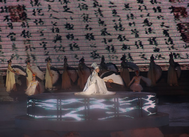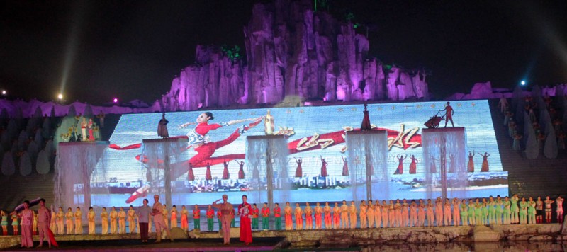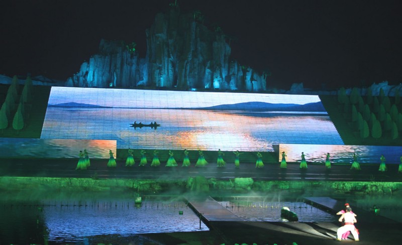 大型實景演出《蒙山沂水》曾獲第七屆中國舞蹈“荷花獎”組委會特別獎,藝術(shù)再現(xiàn)了臨沂的發(fā)展歷程,反映了獨具特色的沂蒙文化。整場演出由山高水長、地靈人杰、熱土情深和印象沂蒙四個部分組成,利用水幕影像、動畫制作、電腦激光等現(xiàn)代科技,結(jié)合人、景、泉、服、聲、光、電、火、石等元素,巧妙融入臨沂諸多文化精粹,將古時智圣諸葛亮、書圣王羲之,革命年代“淵子崖戰(zhàn)役”、“水中火線橋”,經(jīng)濟騰飛的現(xiàn)代化臨沂等古今文明形象再現(xiàn)。震撼的舞臺效果,為每一位到場員工呈現(xiàn)出一場文化與視覺的盛宴。
