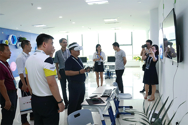 (體驗(yàn)活動(dòng)) 在園區(qū)智慧教育創(chuàng)客活動(dòng)中心,企業(yè)家們?cè)?8間創(chuàng)客教室及蓮花型的創(chuàng)客活動(dòng)中心內(nèi)親身體驗(yàn)VR/AR設(shè)備、通過木工器械打磨手工、參觀藝達(dá)天香書畫院、古琴工坊,并深入了解智能機(jī)器人、機(jī)器魚等先進(jìn)設(shè)備的運(yùn)轉(zhuǎn)情況,整個(gè)參觀過程收獲滿滿,不亦樂乎。