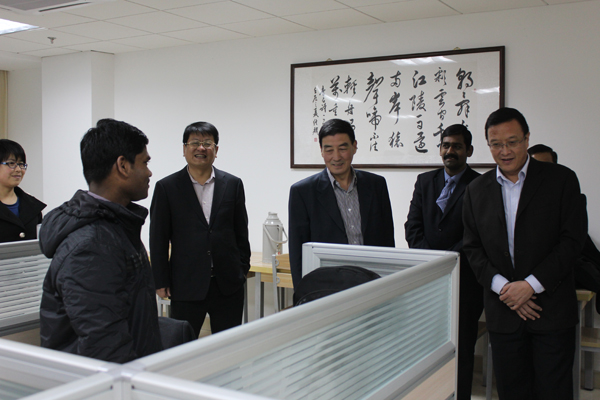 2013年3月12日,省外國(guó)專(zhuān)家局副局長(zhǎng)于順?biāo)⑹⊥鈬?guó)專(zhuān)家局外國(guó)專(zhuān)家管理處副處長(zhǎng)楊國(guó)虎一行到公司視察指導(dǎo)工作,市外專(zhuān)局副局長(zhǎng)闞吉廷陪同。
