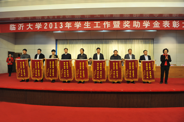 12月18日下午,臨沂大學(xué)隆重舉行了“2013年學(xué)生工作暨獎(jiǎng)(助)學(xué)金表彰大會(huì)”,副總經(jīng)理曹磊代表公司作為捐資助學(xué)單位出席此次大會(huì),接受臨沂大學(xué)黨委書記丁鳳云贈(zèng)送的錦旗,并為獲獎(jiǎng)學(xué)生代表頒獎(jiǎng)。