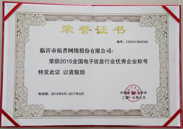 | ?熱烈祝賀公司榮獲“2015全國電子信息行業(yè)優(yōu)秀企業(yè)”稱號 |