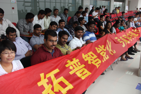 9月21日上午,公司的40余名印度籍專家團(tuán)隊(duì)也早早的來到在沂河南部F1場(chǎng)館,用他們印度特有的熱情為運(yùn)動(dòng)員吶喊加油。印度籍專家Ratha說,自去年11月份來到臨沂,他們已經(jīng)適應(yīng)這里的生活和工作,公司領(lǐng)導(dǎo)和同事對(duì)他們非常友好,并且公司經(jīng)常組織豐富的文化娛樂活動(dòng),使他們身心愉快。這次有幸能觀賞國際水上摩托大賽對(duì)他們來說是人生中難忘的一次經(jīng)歷。對(duì)于精彩的表演,印度籍專家紛紛表示,“太棒了!太棒了!”