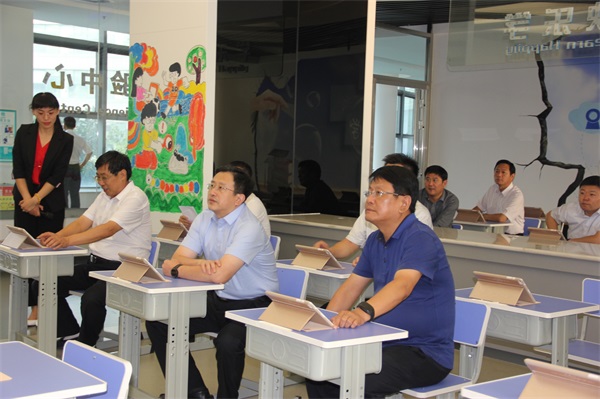 2017年9月28日,副市長常紅軍率調(diào)研組一行到園區(qū)調(diào)研智慧教育云服務項目。市教育局局長尹傳斌,開發(fā)區(qū)黨工委副書記、管委會副主任王文元,開發(fā)區(qū)黨工委委員、管委會副主任劉發(fā)舜,公司董事長王嵐保陪同。 調(diào)研組一行先后實地查看了高科技互動體驗展廳、大數(shù)據(jù)中心、拓普智慧課堂、信息化綜合培訓中心、臨沂智慧教育創(chuàng)客活動中心、專家公寓客房,在大愛社區(qū)服務中心,觀看了臨沂市智慧教育云平臺功能應用展示,認真聽取了關(guān)于臨沂市智慧教育云平臺建設運營情況的詳細匯報,并在四樓會議室召開了座談會。