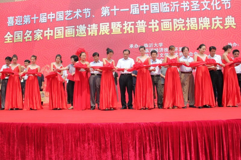 儀式由臨沂市文廣新局局長曹首娟主持,魯迅美院著名教授、國畫系主任、研究生導(dǎo)師、中國美協(xié)會員李榮光先生和臨沂市拓普網(wǎng)絡(luò)股份有限公司總經(jīng)理王嵐保分別為開幕儀式致辭,中國美術(shù)家協(xié)會理事、江西省美協(xié)常務(wù)副主席兼秘書長李暉和臨沂大學(xué)黨委書記丁鳳云為拓普書畫院揭牌,臨沂市領(lǐng)導(dǎo)朱紹陽、慕增利、朱兆彬、 顏廷瑞、溫希森、李宏彥、龍巖等領(lǐng)導(dǎo)以及張大千門人、張大千畫派藝術(shù)創(chuàng)作中心藝術(shù)顧問江蘋先生、 山西省美協(xié)副主席、山西省文史館館員、山西當(dāng)代花鳥畫研究院院長喬亞丁先生、 中國美協(xié)會員、中國徐悲鴻畫院藝術(shù)委員會主任,文化部中外文化交流中心秘書長衣慧春先生及全國及其他賜稿的應(yīng)邀知名畫家、臨沂拓普書畫院院長、中國美術(shù)家協(xié)會會員、國家一級美術(shù)師顏泉等知名人士參加畫展開幕式并為本次活動剪彩。