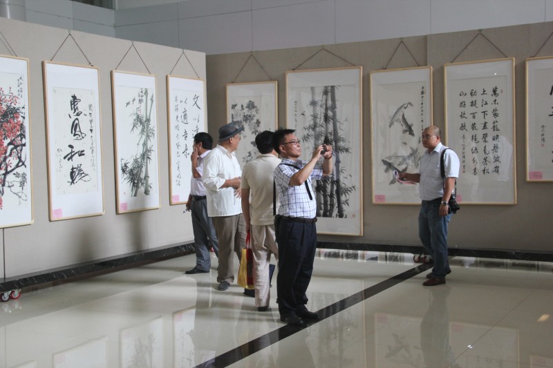 原內(nèi)蒙古人大副主任、中國法學(xué)會副會長、著名書畫家胡忠先生,中國美協(xié)理事、江蘇省美協(xié)秘書長兼常務(wù)副主席尹石先生,中國美協(xié)理事、江西美協(xié)常務(wù)副主席李暉先生,天津美院著名教授賈寶珉先生,河北省政協(xié)常委、省畫院副院長、省美協(xié)副主席黃耿辛先生,河南省美協(xié)副主席、省畫院院長文柳川先生,山西美協(xié)副主席喬亞丁先生等一大批全國知名書畫家的作品在畫展上展示,為臨沂市民帶來一場藝術(shù)盛宴。