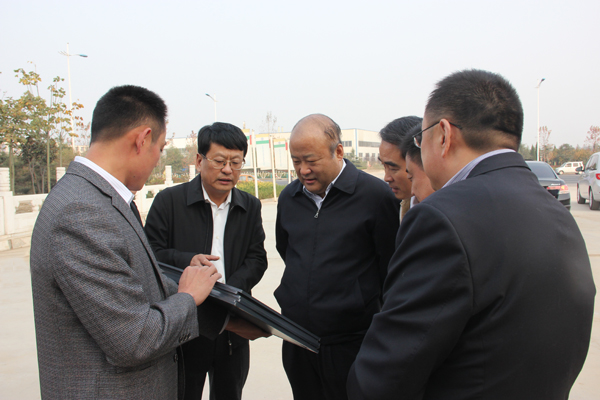 張書(shū)記在施工現(xiàn)場(chǎng) 王總向張書(shū)記介紹園區(qū)規(guī)劃圖